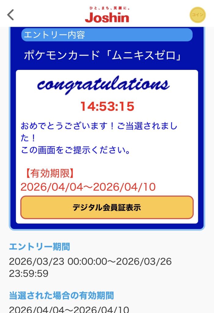 あと、ポケモンカードのアプリでの抽選。