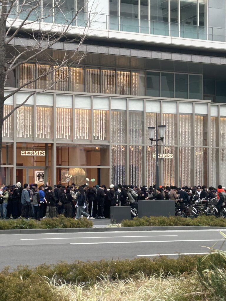 本町から心斎橋まではまだ歩ける距離でしたので、散歩がてらに行きましたが、エルメスの前に行列が、、、